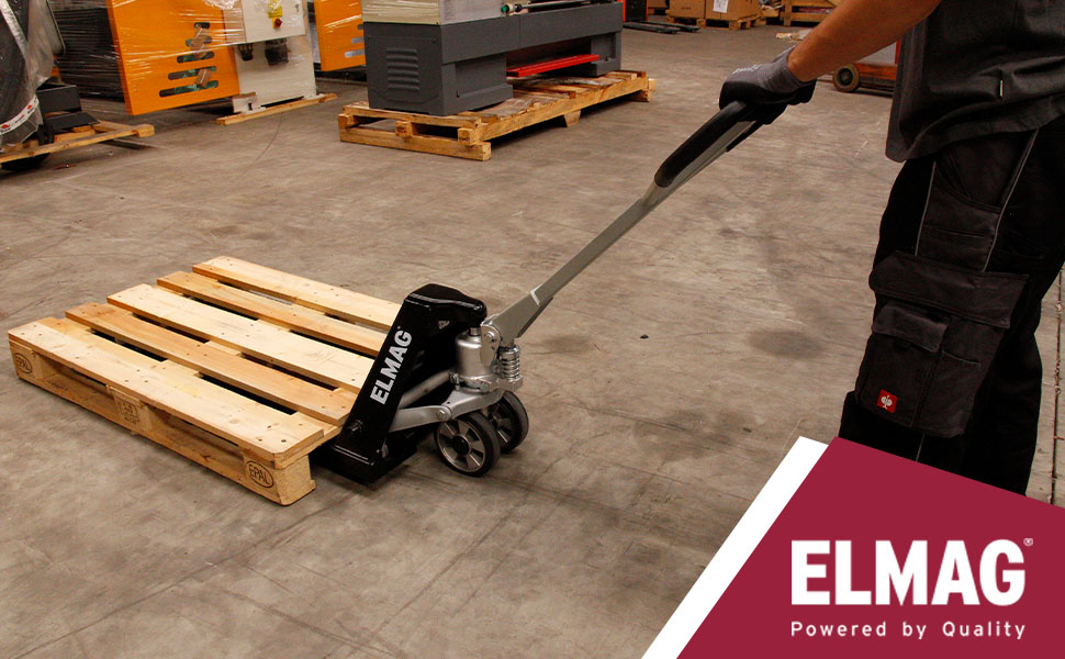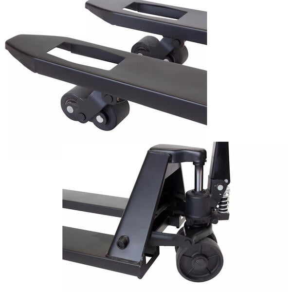 Handhubwagen,Tragkraft 2500kg, garantiert sicheren Transport von Waren, Gabelbreite 540mm, Gabellänge 1.150mm, max. Hubhöhe 200mm, Erhebliche Lärmreduzierung durch Gummiräder und Polyurethan-Tandemrollen, robuster Anschlagbock