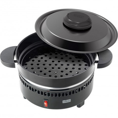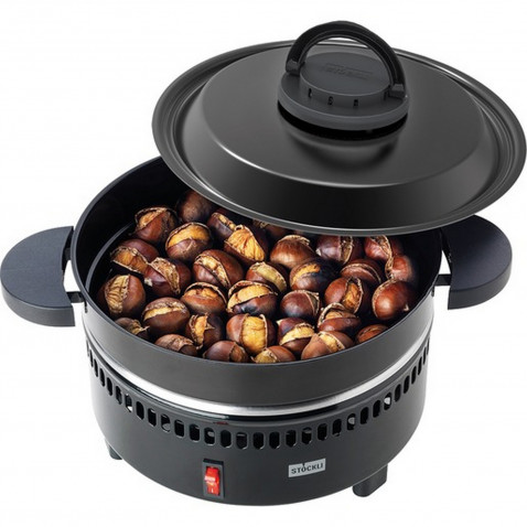 Passend für ca. 500 g Maroni, auch geeignet für die Zubereitung kleiner Kartoffeln als baked potatoes, Durchmesser: 24 cm, Höhe: 24 cm, Pfanne und Deckel schwarz emailliert, Unterteil schwarz pulverbeschichtet, Deckelknopf einklappbar.